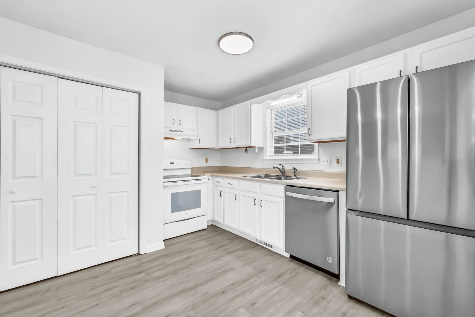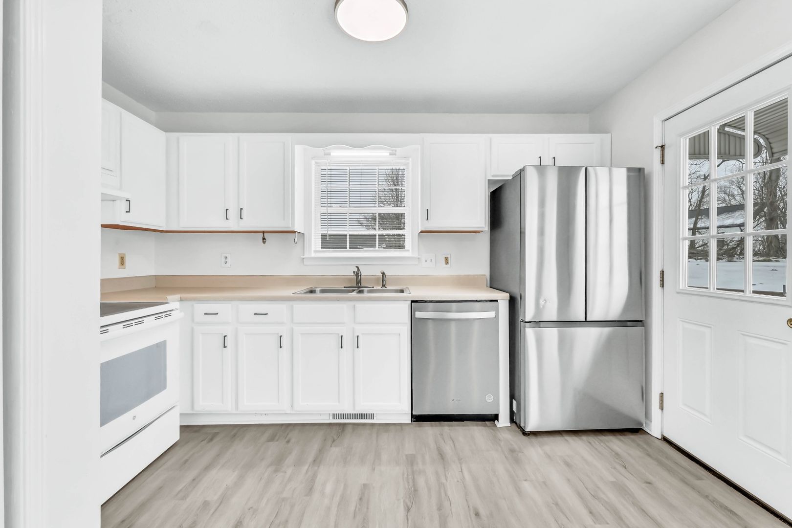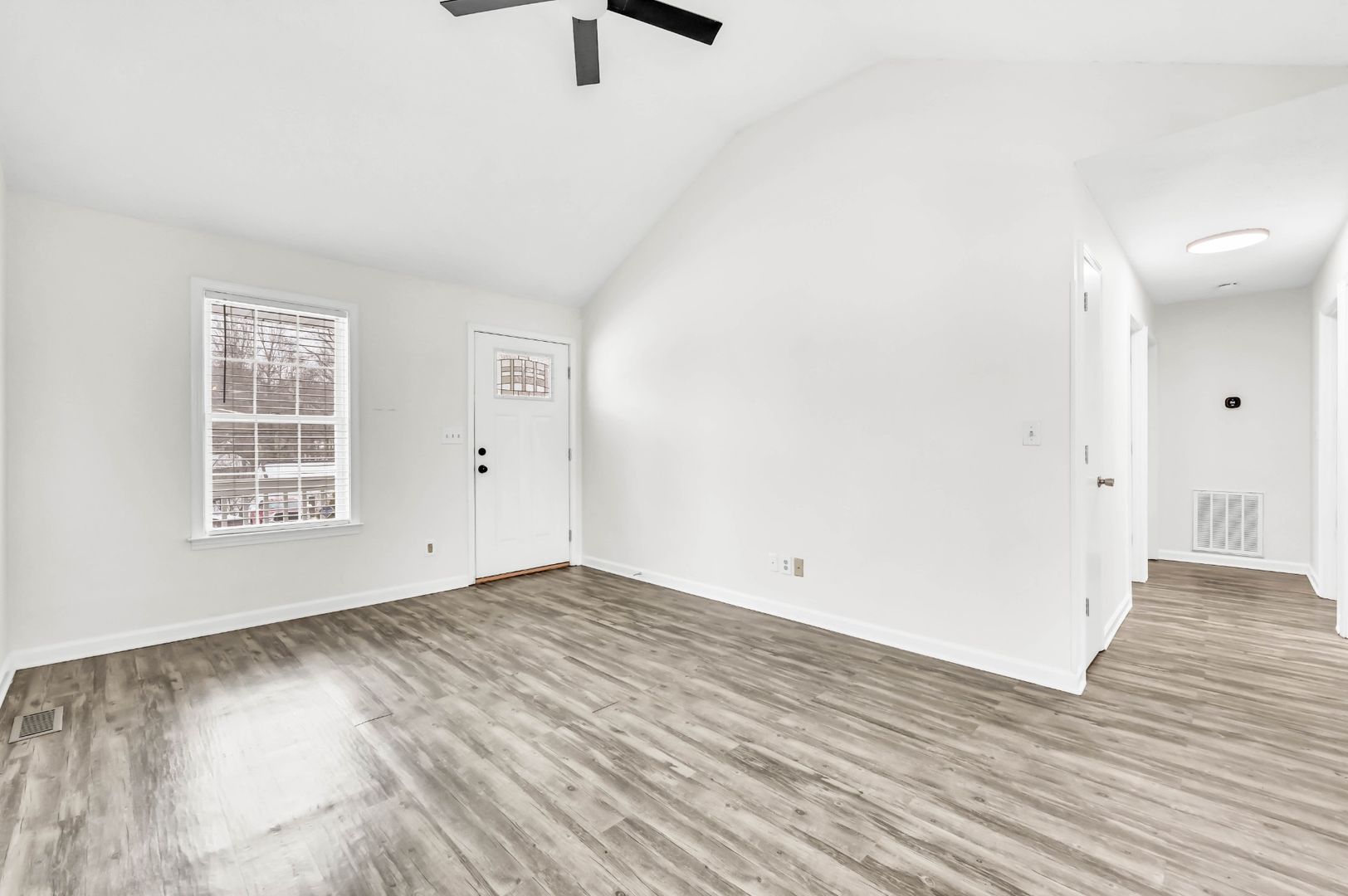 Charming ranch-style home in the quiet Applegrove neighborhood of Clarksville — no HOA! The home features a welcoming front porch, perfect for relaxing mornings or unwinding in the evenings. Inside, find durable LVP flooring and blinds installed throughout. Washer and dryer are included and a TV mount is already in place in the primary bedroom. The HVAC was replaced in 2021, providing added peace of mind and energy efficiency. The fully fenced backyard offers space for pets, play, or entertaining, along with a storage building for additional storage and a dedicated fire pit setup ready for outdoor gatherings.