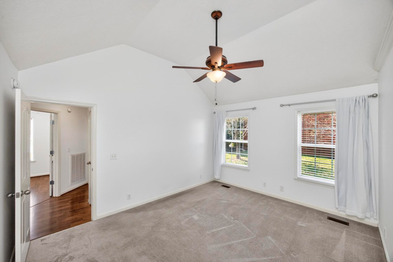 If you want both comfort and convenience, this property is for you! This 3 bedroom, 2 bathroom home is nestled in a beautiful golf course community and offers a functional, well-designed layout. All bedrooms are located on the main level, while a spacious bonus room upstairs provides flexibility for a home office, media room, or additional living space. The living room features a cozy gas fireplace, perfect for relaxing evenings, along with vaulted ceilings that extend into the primary and second bedrooms, creating an open, airy feel throughout. Enjoy outdoor living with a covered porch and a fully fenced backyard, offering both privacy and space to unwind. Conveniently located near the interstate, shopping, and dining. No HOA.